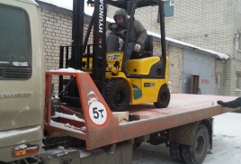 Для гарантированной и безопасной перевозки обязательно надо закрепить транспортное средства нужным образом. Некоторые водители эвакуаторов не обращают внимание на технику безопасности, закрепляют транспортное средства только тросом и вся нагрузка падает на лебедку. ЭТО НЕ ПРАВИЛЬНО. Ниже, специально выставлены фотографии, как правильно закрепить вилочный погрузчик во время транспортировки.